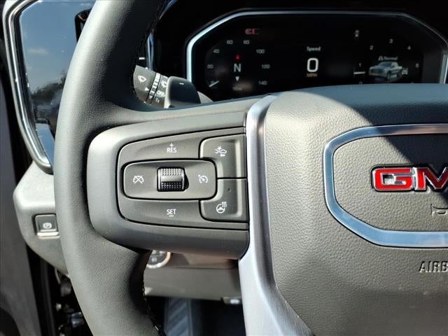 Onyx Black 2026 GMC Sierra 1500 SLT 4WD 10-Speed Automatic EcoTec3 5.3L V8 10-Speed Automatic, 4WD, Black Leather, 120-Volt Bed Mounted Power Outlet, 120-Volt Interior Power Outlet, 170 Amp Alternator, 2 Charge/Data USB Ports, 2 Charge/Data USB Ports Inside Center Console, 2 Type-C Charge-Only Rear USB Ports, 20" Polished Aluminum Wheels, 3.23 Rear Axle Ratio, 4-Wheel Disc Brakes, 6 Speakers, 6-Speaker Audio System Feature, ABS brakes, Adaptive Cruise Control, Air Conditioning, Alloy wheels, AM/FM radio: SiriusXM with 360L, Apple CarPlay/Android Auto, Auto High-beam Headlights, Auto-dimming door mirrors, Auto-dimming Rear-View mirror, Auto-Locking Rear Differential, Automatic Emergency Braking, Automatic temperature control, Auxiliary External Transmission Oil Cooler, Brake assist, Buckle to Drive, Bumpers: chrome, Chrome Header & Chrome Grille Insert Bars, Chrome Wheel To Wheel Assist Steps, Color-Keyed Carpeting Floor Covering, Compass, Deep-Tinted Glass, Delay-off headlights, Driver door bin, Driver Memory, Driver vanity mirror, Dual Exhaust System, Dual front impact airbags, Dual front side impact airbags, Electric Rear-Window Defogger, Electronic Precision Shift, Electronic Stability Control, Emergency communication system: OnStar, Floor-Mounted Center Console, Following Distance Indicator, Forward Collision Alert, Front 40/20/40 Split-Bench Seat, Front anti-roll bar, Front Bucket Seats, Front Center Armrest w/Storage, Front dual zone A/C, Front fog lights, Front Frame-Mounted Black Recovery Hooks, Front Pedestrian Braking, Front Rain-Sensing Wipers, Front reading lights, Front wheel independent suspension, Fully automatic headlights, HD Rear Vision Camera, HD Surround Vision, Heated 2nd Row Outboard Seats, Heated door mirrors, Heated front seats, Heated steering wheel, Heavy-Duty Air Filter, High Capacity Suspension Package, Hill Descent Control, Hitch Guidance, Hitch View, Illuminated entry, In-Vehicle Trailering System App, Integrated Trailer Brake Controller, LED Cargo Area Lighting, Low tire pressure warning, Manual Tilt-Wheel & Telescoping Steering Column, Memory seat, Navigation System, Occupant sensing airbag, Off-Road Suspension, OnStar Services Capable, Outside temperature display, Overhead airbag, Overhead console, Panic alarm, Passenger door bin, Passenger vanity mirror, Perf Leather-Appointed Front Outboard Seat Trim, Perimeter Lighting, Power Door Locks, Power door mirrors, Power driver seat, Power Front Passenger Windows w/Express Up/Down, Power passenger seat, Power Rake & Telescoping Steering Column, Power steering, Power Sunroof, Power windows, Preferred Equipment Group 4SA, Premium Bose 7-Speaker Sound System, ProGrade Trailering System, Push Button Start, Radio data system, Radio: Premium GMC Infotainment Audio System, Rain sensing wipers, Rear Cross Traffic Braking, Rear Pedestrian Detection, Rear reading lights, Rear seat center armrest, Rear step bumper, Rear Wheelhouse Liners, Rear window defroster, Remote keyless entry, Remote Vehicle Starter System, Safety Alert Seat, Security system, Sierra Safety Plus Package, SLT Convenience Package, SLT Preferred Package, SLT Premium Plus Package, Speed control, Speed-sensing steering, Split folding rear seat, Spray-On Pickup Bedliner w/GMC Logo, Standard Suspension Package, Steering Wheel Audio Controls, Steering wheel mounted audio controls, Tachometer, Telescoping steering wheel, Theft Deterrent System (Unauthorized Entry), Tilt steering wheel, Traction control, Trailer Camera Provisions, Trailer Side Blind Zone Alert, Trailering Package, Trip computer, Ultrasonic Front & Rear Park Assist, Universal Home Remote, Variably intermittent wipers, Ventilated Driver & Front Passenger Seats, Voltmeter, Wheels: 18" x 8.5" 6-Spoke Machined Aluminum, Wi-Fi Hotspot Capable, Wireless Apple CarPlay/Wireless Android Auto, Wireless Charging, X31 Hard Badge, X31 Off-Road Package, 10-Speed Automatic, 4WD, Black Leather.