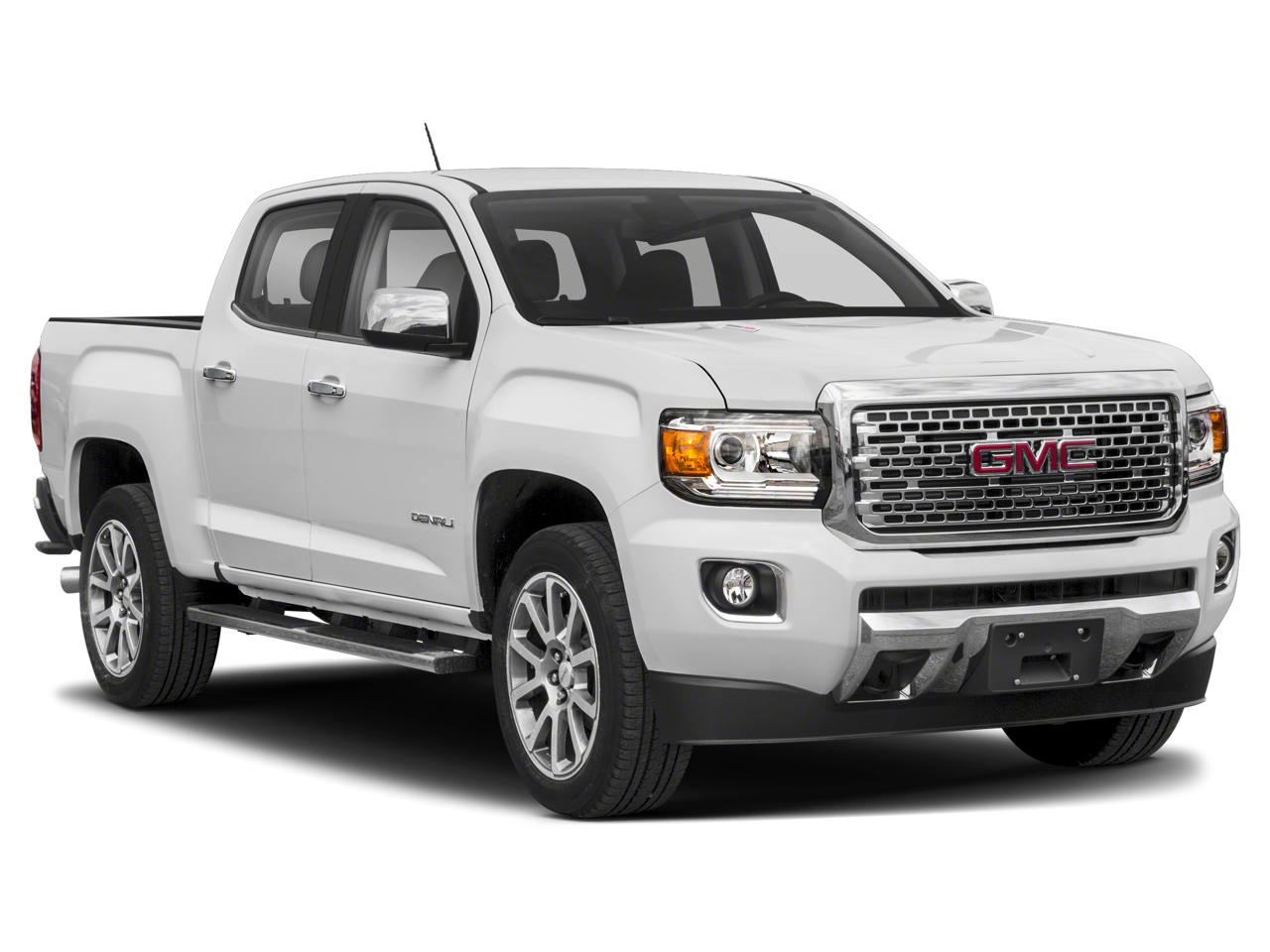 Satin Steel Metallic 2019 GMC Canyon Denali 4WD 8-Speed Automatic V6 4WD, 2 USB Data Ports, 3.42 Rear Axle Ratio, 4-Way Power Front Passenger Seat Adjuster, 4-Wheel Disc Brakes, 5" Rectangular Chrome Assist Steps, 7 Speakers, ABS brakes, Air Conditioning, All-Weather Floor Liner (LPO), Alloy wheels, AM/FM radio: SiriusXM, Apple CarPlay/Android Auto, Auto-dimming Rear-View mirror, Automatic temperature control, Black Spray-On Bedliner w/GMC Logo, Bose Premium 7-Speaker Audio System Feature, Bumpers: body-color, Compass, Delay-off headlights, Denali-Specific Chrome Grille, Driver 6-Way Power Seat Adjuster, Driver Alert Package, Driver door bin, Driver vanity mirror, Dual front impact airbags, Dual front side impact airbags, Electronic Stability Control, Exterior Parking Camera Rear, Forward Collision Alert, Front anti-roll bar, Front Bucket Seats, Front Center Armrest, Front fog lights, Front reading lights, Front wheel independent suspension, Fully automatic headlights, HD Radio, Heated door mirrors, Heated Driver & Front Passenger Seats, Heated front seats, Heated Steering Wheel, Heated steering wheel, Illuminated entry, Lane Departure Warning System, Low tire pressure warning, Navigation System, Occupant sensing airbag, Outside temperature display, Overhead airbag, Overhead console, Panic alarm, Passenger door bin, Passenger vanity mirror, Perforated Leather-Appointed Seat Trim, Polished Exhaust Tip, Power door mirrors, Power Driver Lumbar Control Seat Adjuster, Power driver seat, Power Passenger Lumbar Control Seat Adjuster, Power passenger seat, Power steering, Power windows, Preferred Equipment Group 4SD, Premium audio system: GMC Infotainment System, Radio data system, Radio: AM/FM w/8" Diagonal Color Touch-Screen Nav, Rear reading lights, Rear seat center armrest, Rear step bumper, Rear window defroster, Remote keyless entry, Security system, SiriusXM Radio, Speed control, Speed-sensing steering, Steering wheel mounted audio controls, Tachometer, Telescoping steering wheel, Tilt steering wheel, Tow/Haul Mode, Traction control, Trailering Assist Guideline Hitch Guidance, Trailering Package, Trip computer, Ultrasonic Rear Parking Assist, Variably intermittent wipers, Ventilated Driver Seat, Ventilated Front Passenger Seat, Ventilated front seats, Wheels: 20" x 8.5" Ultra-Bright Machined Aluminum, 4WD.